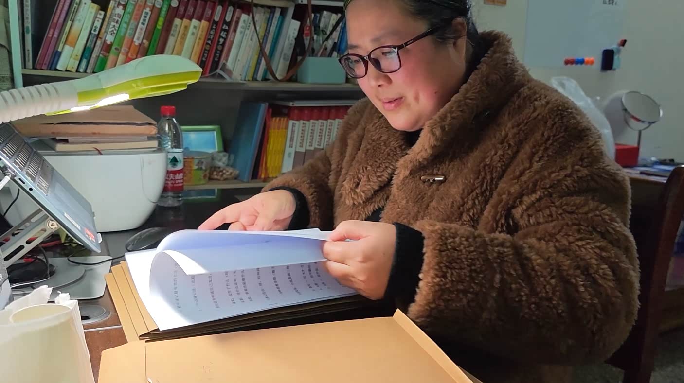 薛焕莉的家在县城的一栋老居民楼,不大的客厅里,一半的空间都装着和姐姐有关的资料。墙上的白板写着薛焕莉推理的案情,书架上摆着成套的民法典,书桌上摞满资料……她和孩子小时候一起看的侦探片,这次派上了用场。