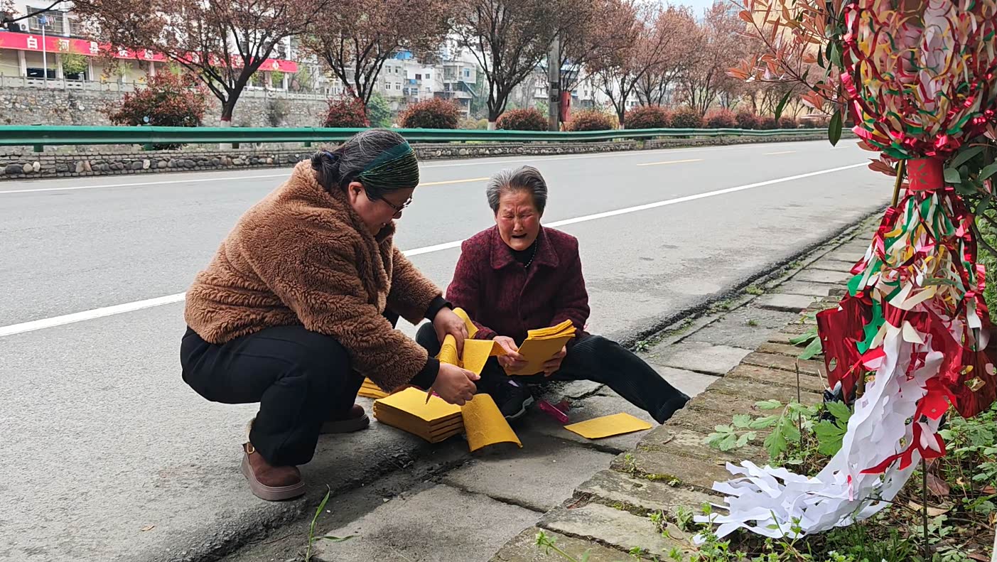 (清明节前妹妹带着母亲祭奠亡姐)