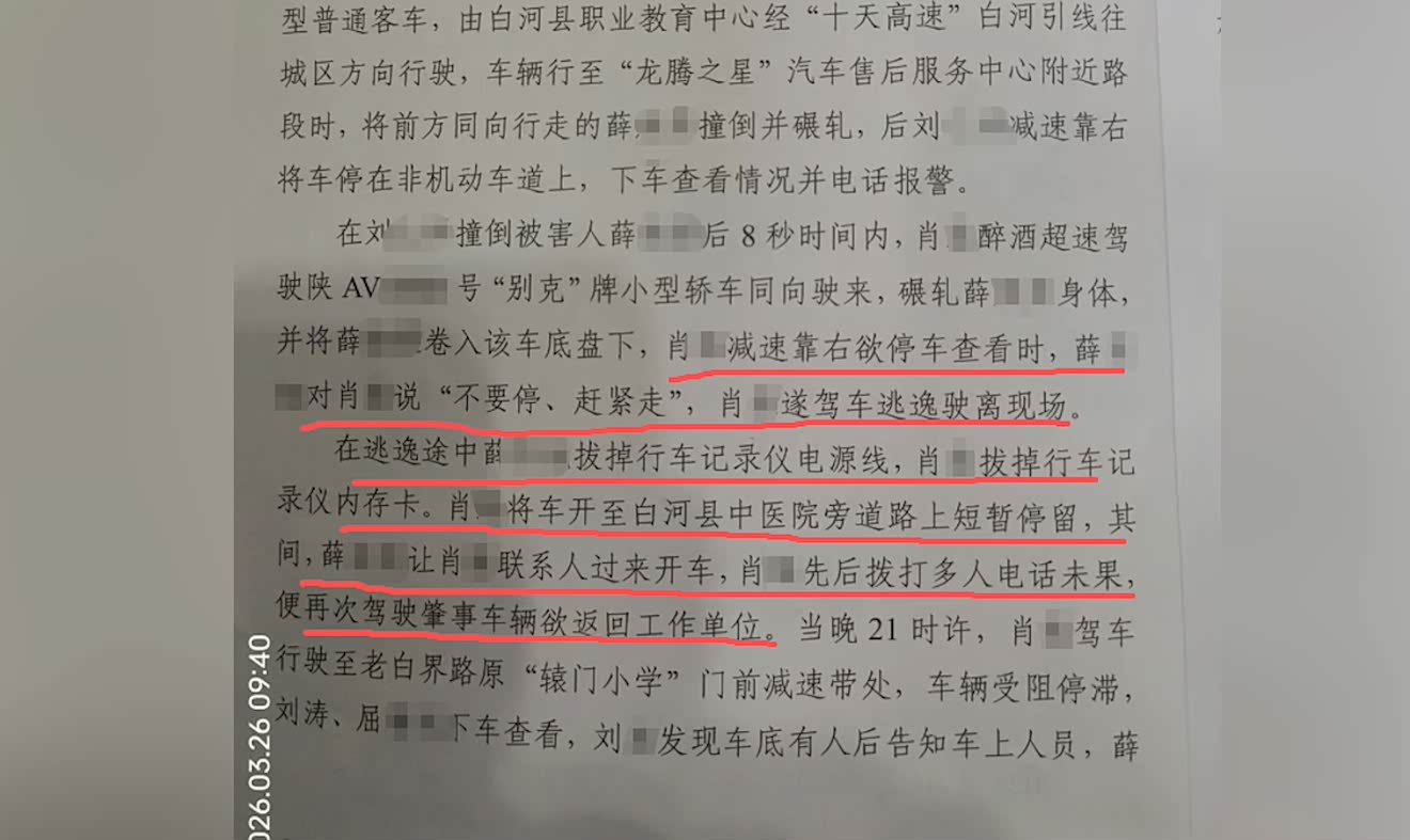 “我们在警方提供的监控里看到,肖某曾在白河县中医院旁道路上短暂停留。”薛焕莉站在肖某停车的地方告诉记者,肖某停车后下车打电话“找人顶包”,车上其余四人“交换位置”,当时姐姐就在车底。陕西省旬阳市人民检察院起诉书里也显示,车上乘客薛某旭让肖某联系人过来开车,肖某先后拨打多人电话未果,便再次驾驶肇事车辆欲返回工作单位。