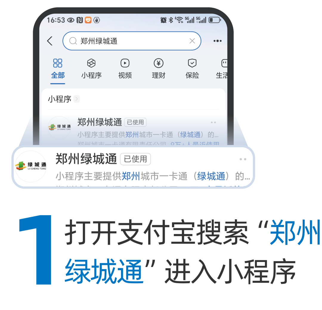 1、打开支付宝搜索“郑州绿城通”进入小程序