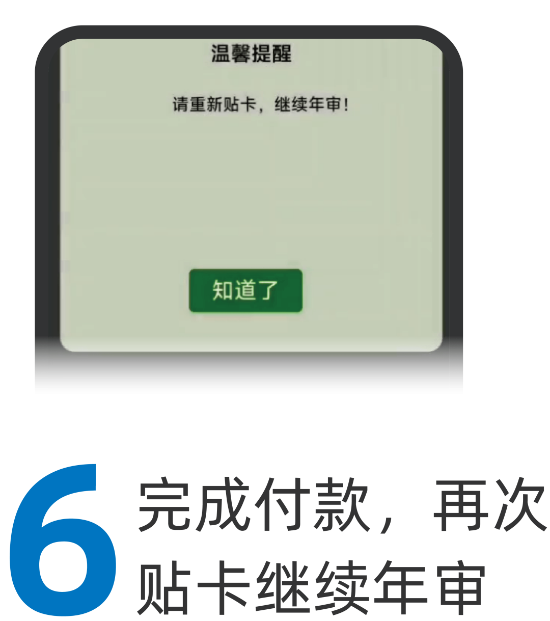 6、获得优惠券并确认付款,再次贴卡继续年审