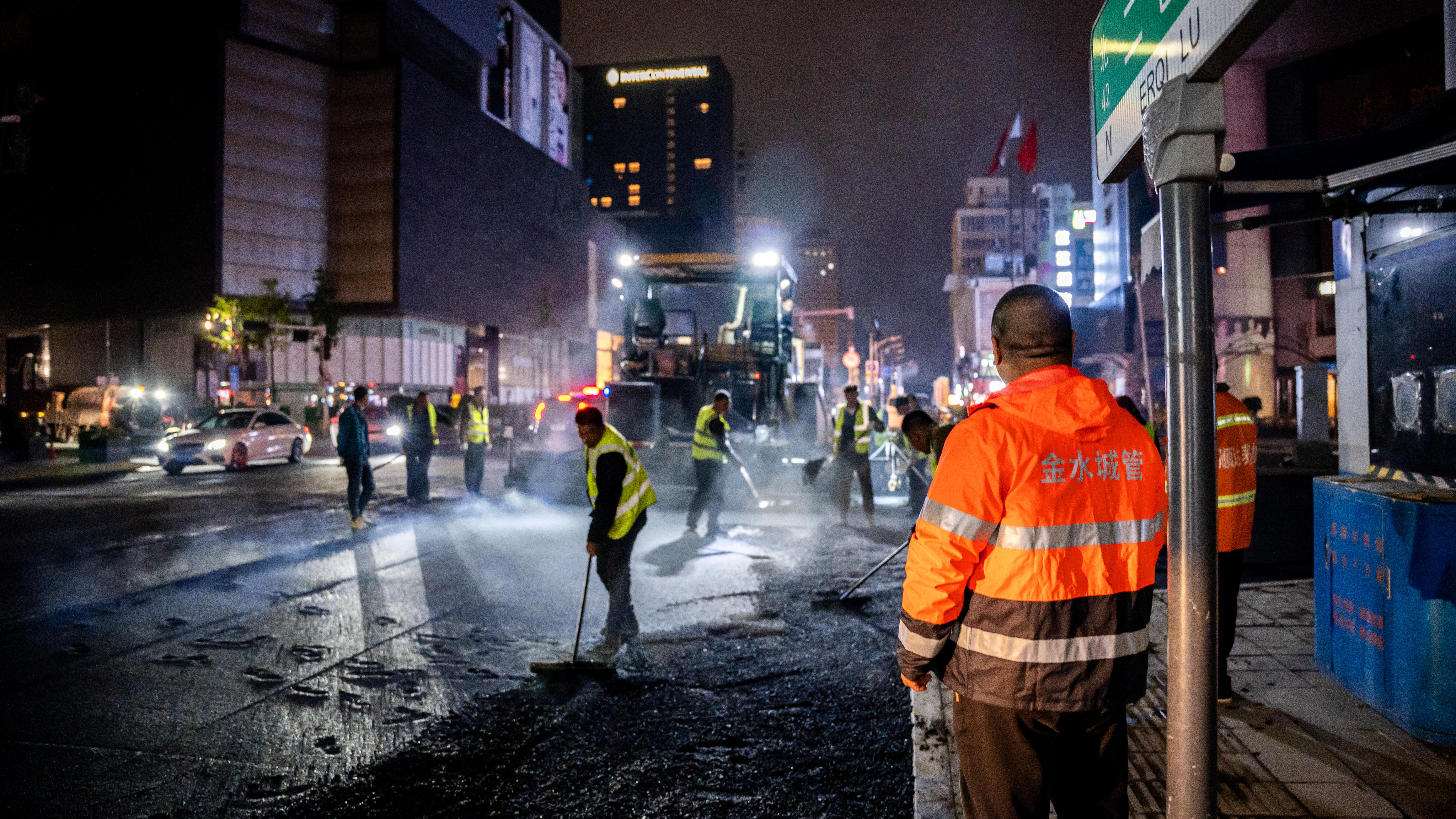 为了尽量不影响市民白天正常通行,金水区城管局和交管部门反复优化施工方案,坚持“最小干预、最快速度”原则,采取夜间错峰施工:夜间22点到次日早上6点施工。白天路口保留双向两条机动车道和一条非机动车道。交管部门还调整了信号灯配时,增设了导流标识,每天安排警力在路口疏导交通,一旦出现拥堵苗头,随时调整围挡、临时放行。