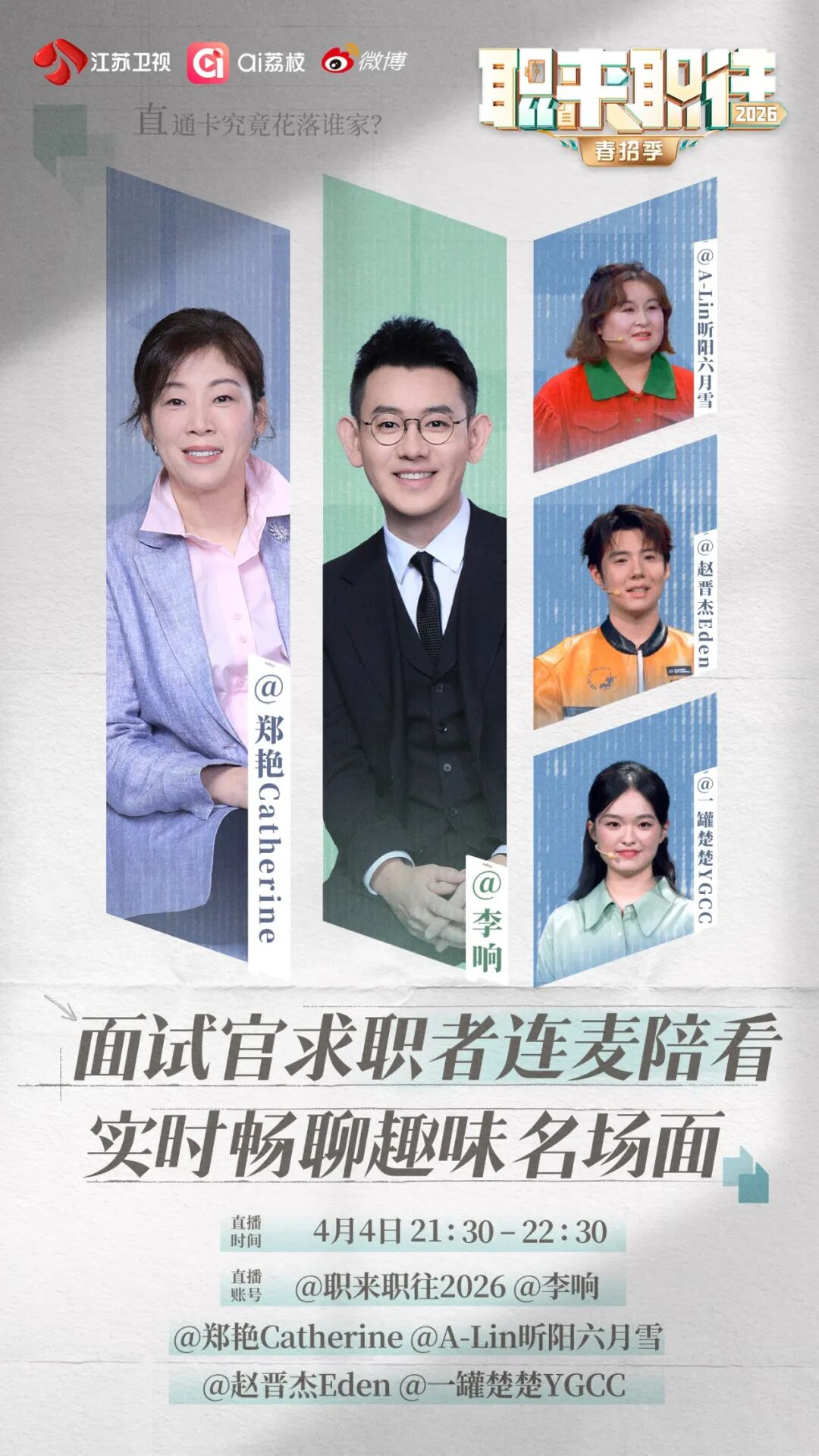 据介绍,本期节目将迎来三位背景迥异、极具代表性的求职者:一位自诩“六边形战士”却困于“已婚未育”标签的资深运营人;一位在“职场盲盒宇宙”中穿梭、梦想与实力并存的“斜杠青年”;还有一位是手握国际设计大奖却毅然跨界AI产品经理的学霸。16位企业面试官犀利拷问、暖心赋能,专业交锋与职场干货齐飞,每一位求职者的求职结果都悬念拉满!