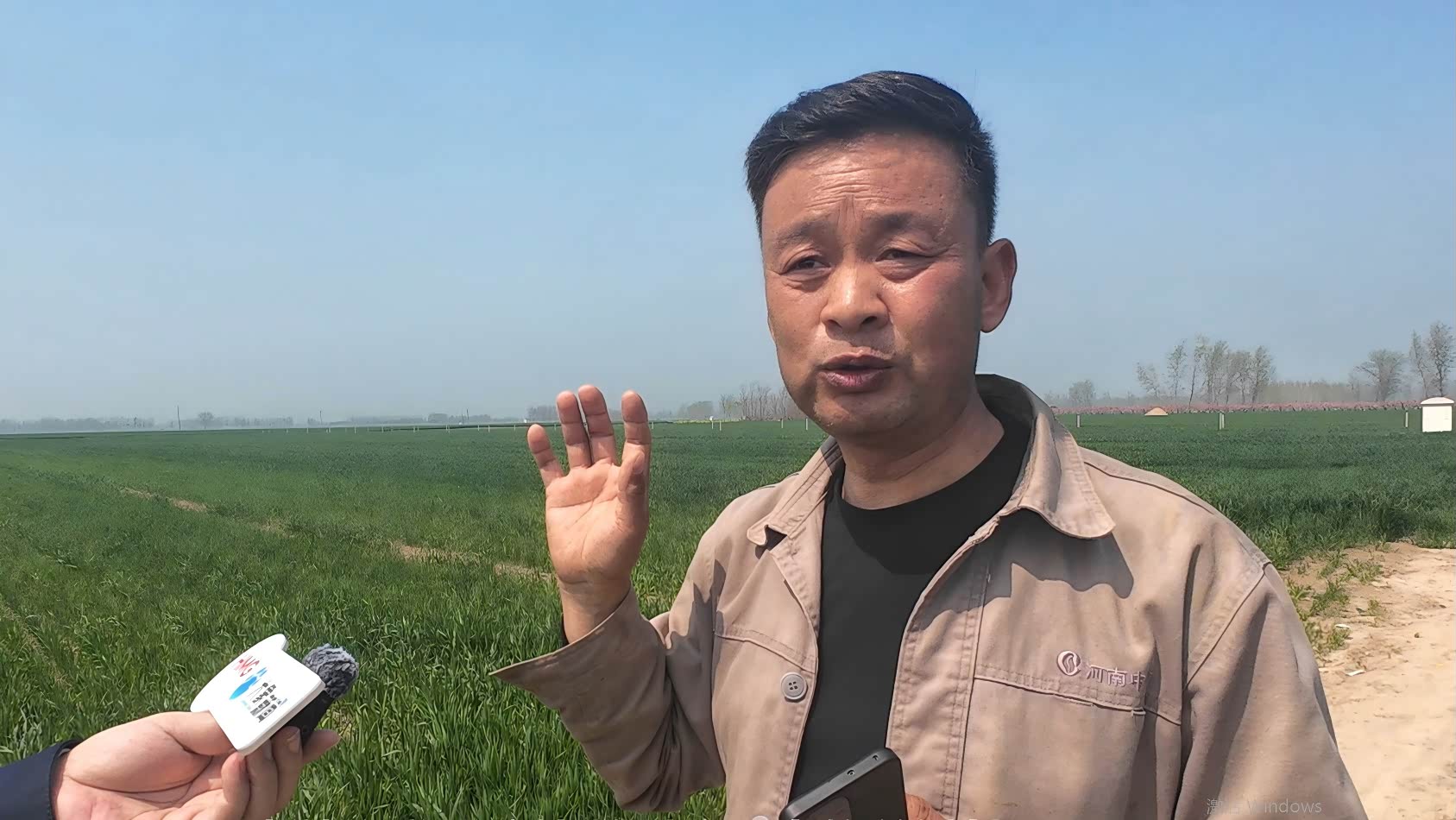 “这一遍浇地很重要,如果跟不上的话,会影响产量。”内岗村村民聂家俊指着自家相邻的两块麦田说,“你们看,多浇一遍水的麦子明显长得高,颜色也深。”