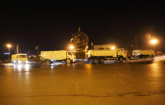 4月6日凌晨,薄雾还未散去,虞城县大同路、健康路、木兰大道等路段已是一派繁忙景象。多台高压冲洗车、洗扫车梯次列队、协同作业,高压水柱强力冲刷着路面与路沿石,尘土随水流快速汇聚,路面迅速恢复洁净本色,有效降低路面扬尘。