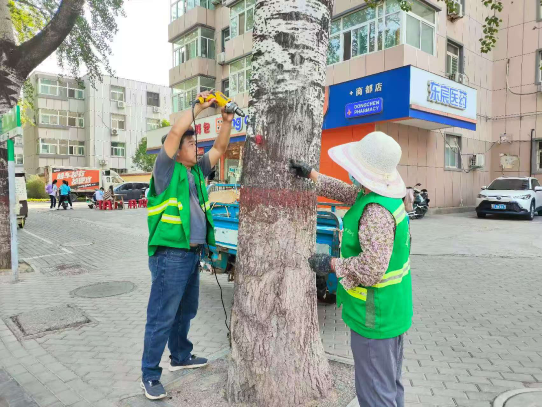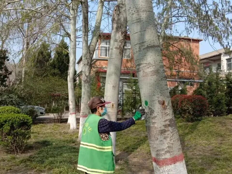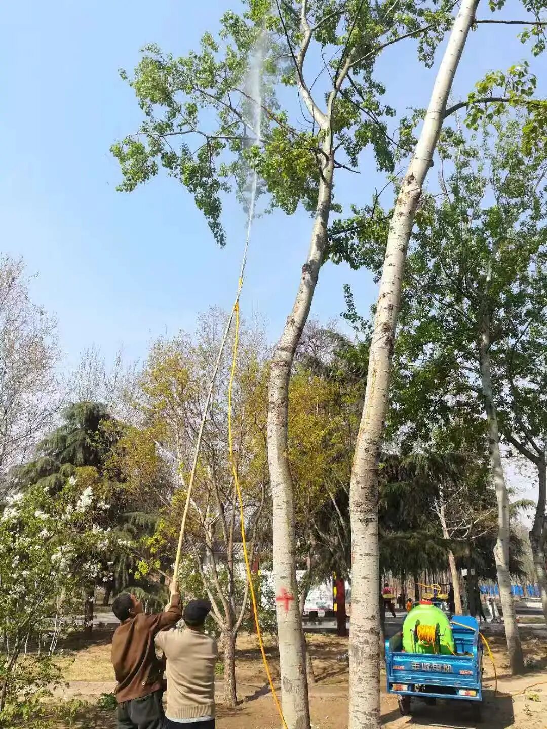 实施药物注射 长效控制飞絮。每年5月中下旬,开展杨柳树雌株药物注射工作。通过向树干注射花芽抑制剂,抑制花芽分化、控制花序形成,从根本上减少次年杨柳飞絮的产生量。