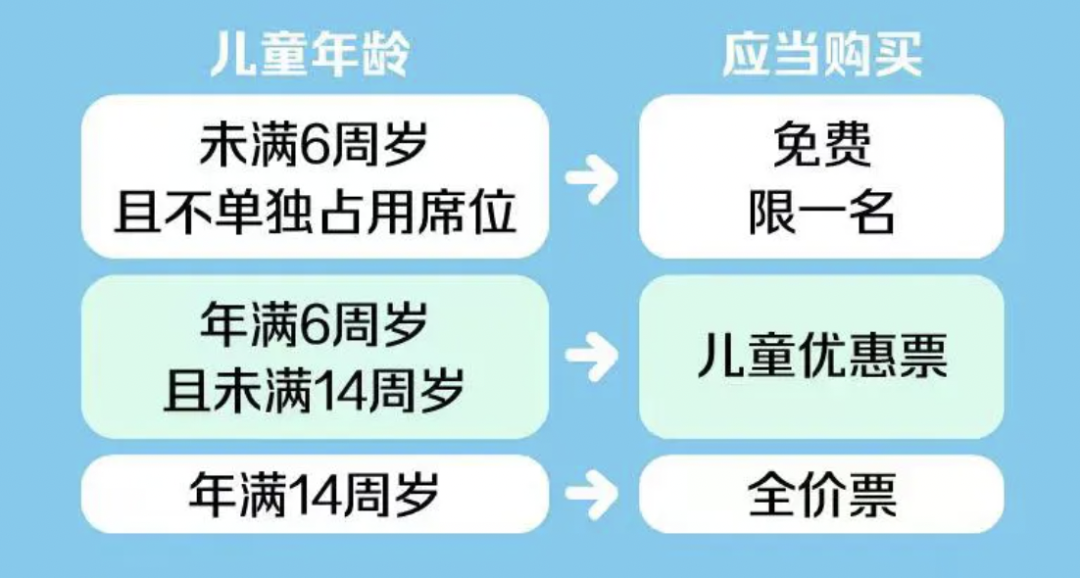 2️⃣年满6周岁且未满14周岁,购买儿童优惠票。