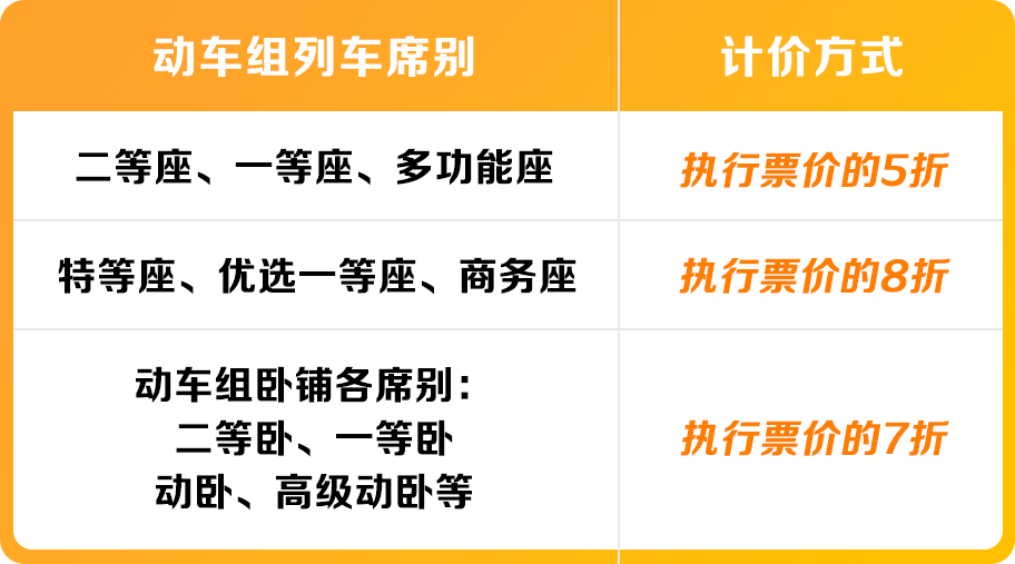 1️⃣动车组列车票价折扣
