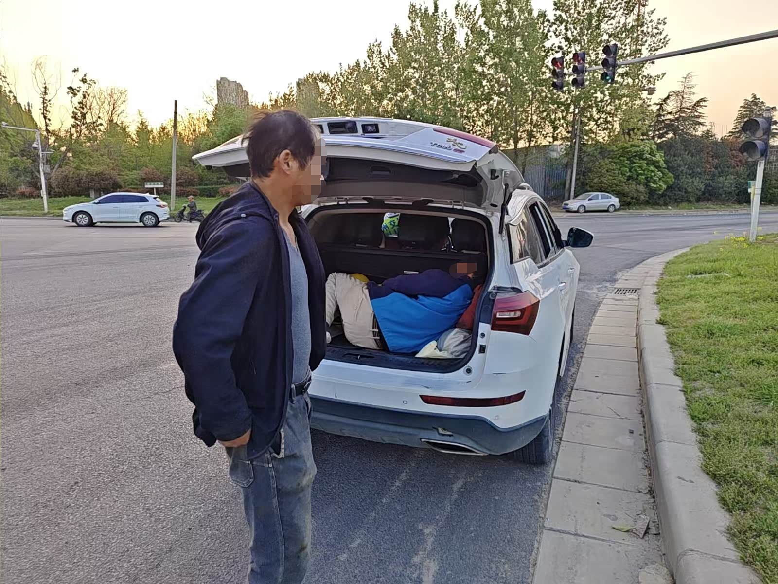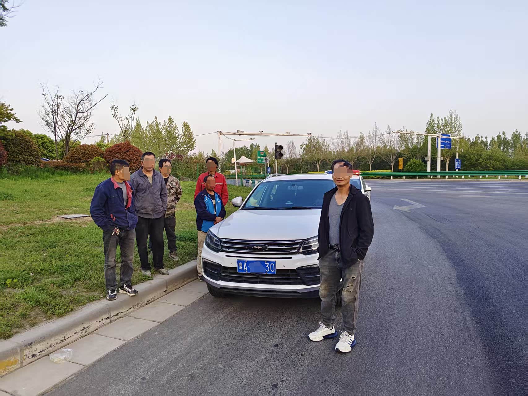 2026年4月7日早晨6时27分,郑州交管二大队夜巡中队中队长乔峰、民警耿家强带领辅警在陇海路与新田大道路口开展车辆超员专项整治行动。此时,一辆车牌号为豫AG***的白色SUV由西向东驶来,民警立即示意驾驶员靠边停车接受检查。