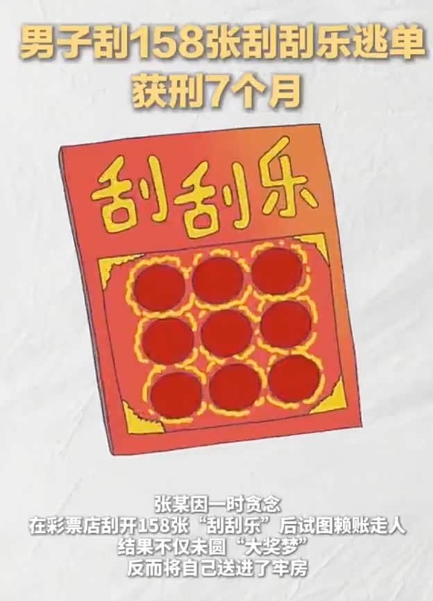 张某因一时贪念,在彩票店刮开158张“刮刮乐”后试图赖账走人,结果不仅未圆“大奖梦”,反而将自己送进了牢房。经河南省禹州市检察院提起公诉,近日,法院以盗窃罪判处被告人张某有期徒刑七个月,并处罚金4000元。