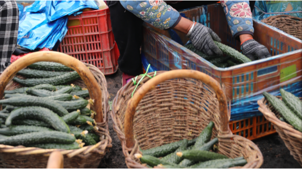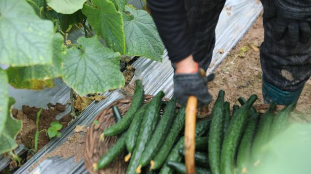 大象新闻记者了解到,周口市扶沟县是蔬菜种植大县,蔬菜常年播种面积52万亩,其中设施蔬菜面积18万亩,从业人员12.36万人,年产蔬菜270万吨。目前“扶沟西瓜”“扶沟辣椒”“扶沟黄瓜”获得国家农产品地理标志产品认证,“扶沟蔬菜”被评为“全国果蔬十大知名品牌”。而种植蔬菜,让这里的菜农每亩收入约5000-8000元,“小菜篮”正成为农民致富的“金饭碗”。