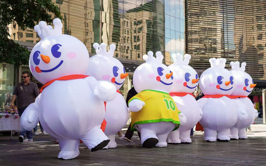 4月11日,蜜雪冰城巴西首店前人头攒动,不少消费者专程从周边城市赶来,只为品尝来自中国的茶饮与冰淇淋。憨态可掬的雪王在剪彩仪式和开业巡游中与当地消费者热情互动,成为现场最受欢迎的“明星”。