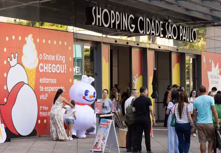 开业前,蜜雪冰城进驻巴西的消息便在当地社交平台引发自发讨论,不少消费者提前关注门店筹备动态。当天,消费者自发拍摄打卡照片上传至社交平台,分享手中的限定产品和与雪王的趣味互动瞬间,中国消费品牌正以贴近生活的方式,自然融入当地居民的日常社交场景。