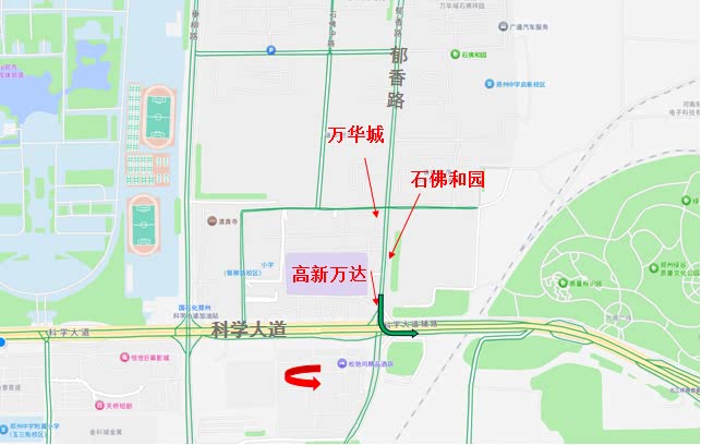 封闭多余的掉头口,减少车辆无序变道和穿插;集中整治郁香路及万达周边的违停乱象,严格规范停车秩序;同时联动科学大道的绿波带,实现支路与主路的通行协同提升。