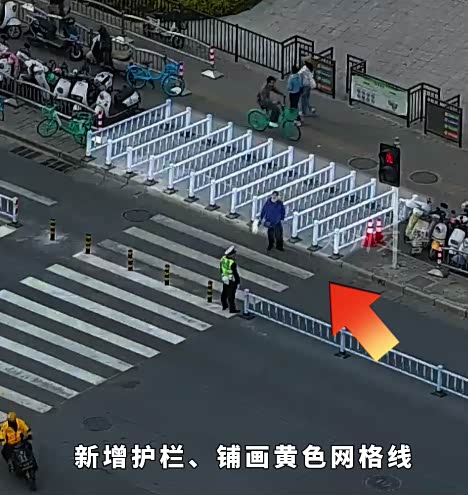 通过路口新增的斑马线,按信号灯指示过街,安全又便捷,不用再绕路啦。
