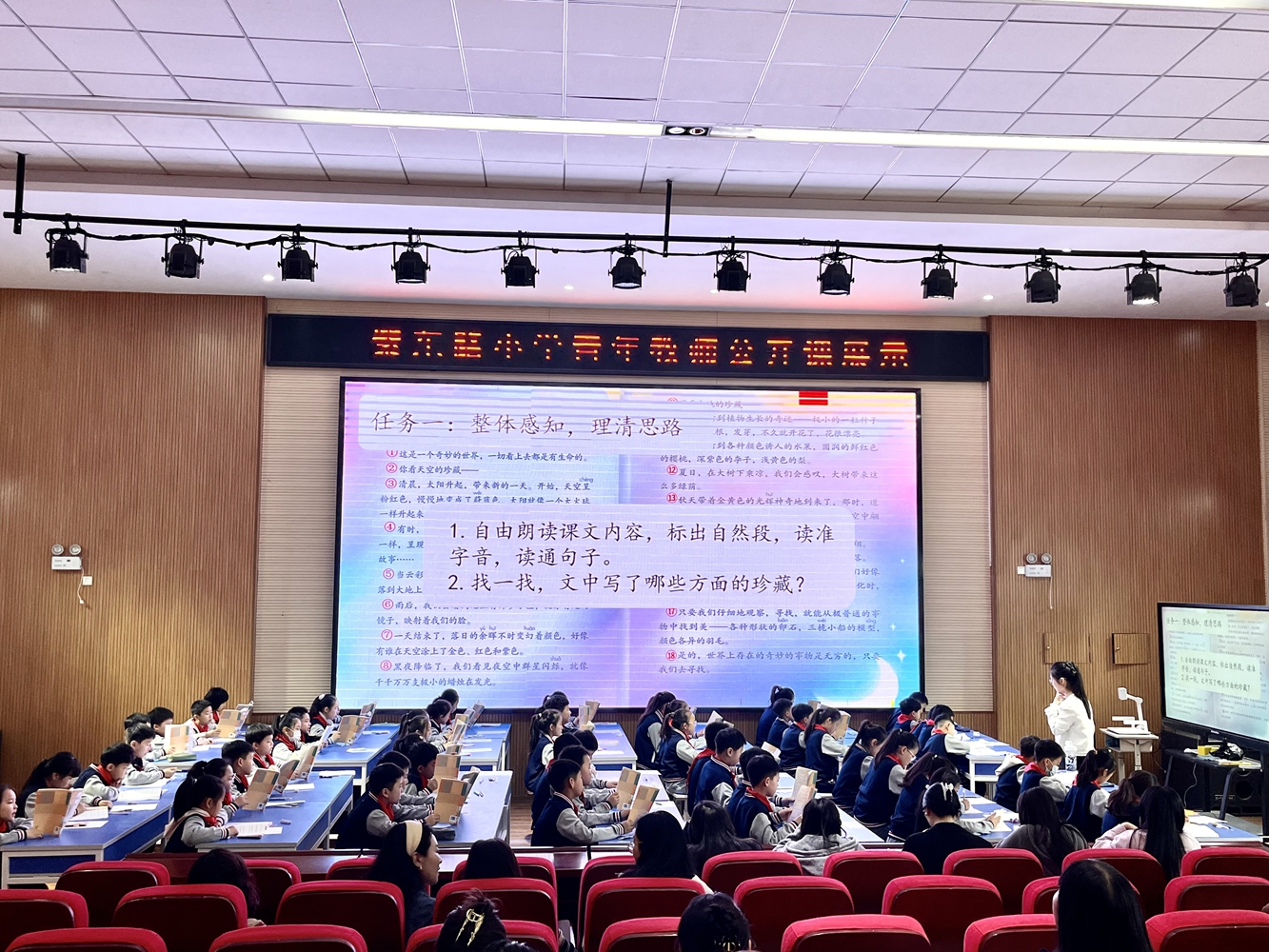 本次展示课覆盖语文、数学、科学、音乐、体育等多个学科,共有10位青年教师在课堂中展现了独特的教学风采。为呈现精彩课堂,课前,青年教师认真研读课标与教材,精心设计教学流程,反复打磨教学细节,做足了充分的备课准备。课上,授课教师自信大方,注重师生互动,适时进行启发引导,推进学生有效学习,熟练运用信息化教学手段,既展示了扎实的教学基本功,又体现了鲜明的个人教学风格。从《学弈》《两小儿辩日》的文言思辨,到《1000以内数的认识》《年历中的秘密》的数理探究;从《做个指南针》的科学实践,到《金孔雀轻轻跳》的音乐律动,再到《原地投掷沙包》的活力运动,每一堂课都充分落实了新课标理念,展现了紫东教师的专业素养与育人初心。