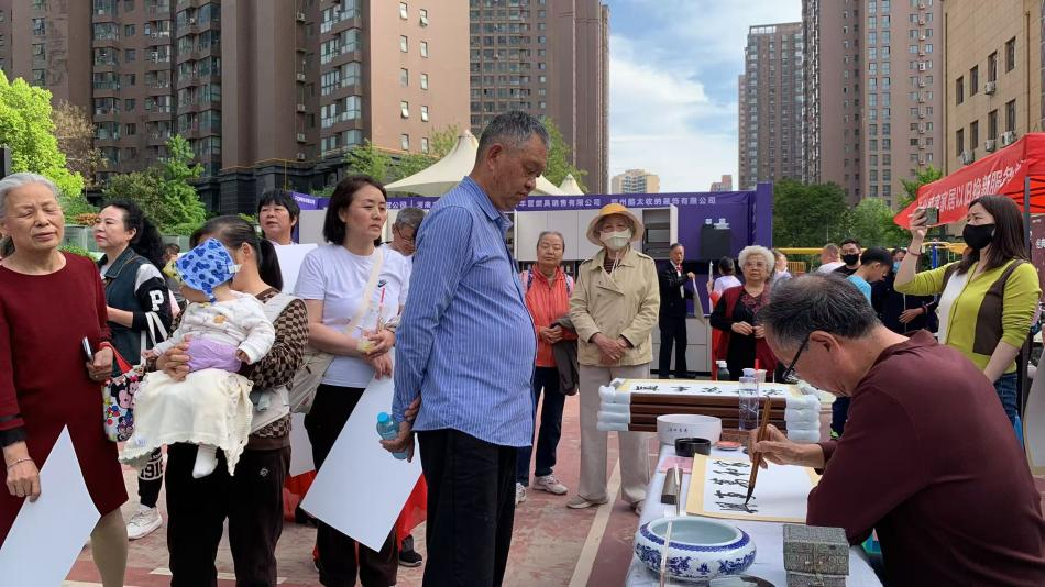 戏曲合唱《你家在哪里》以及情景剧《记不住》精彩开场,活动现场人头攒动、热闹非凡,涵盖了书画名家现场公益创作、家居服务、健康义诊、免费上门专业沙发保养、床垫除螨、免费磨刀等多种便民服务,一站式满足居民生活需求。河南省人民医院急救中心现场开展应急心肺复苏演练,医护人员讲解清晰、演练专业。居民们听得认真,大家表示收获很大。书画家李福明、张志立老师挥毫泼墨,为居民们公益创作书画作品,让传统文化走进居民家中。