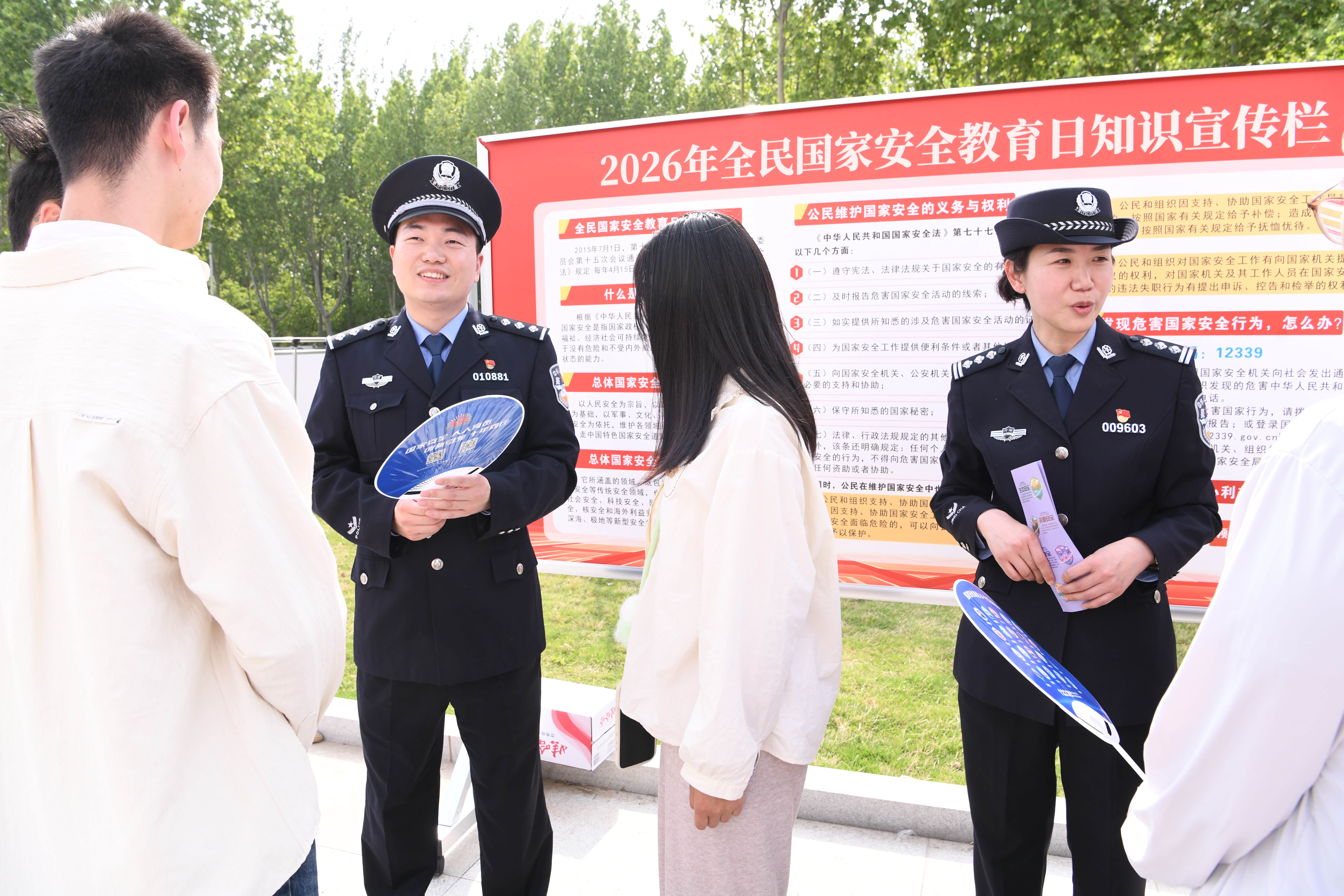4月15日是第十一个全民国家安全教育日,今年活动主题是“统筹发展和安全,护航‘十五五’新征程”。为筑牢青春防线、共护国家安全,4月14日,郑州公安机关组织治安、特警、反诈等警种走进河南中医药大学龙子湖校区,开展了一场别开生面的国家安全宣传教育进校园活动。活动现场,民警们通过“安全讲解+互动游戏”、专题讲座等多种方式,吸引近千名师生积极参与。