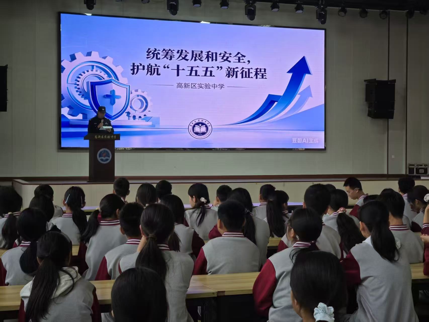 随后,宣传队伍走进高新区实验中学,开展国家安全教育进校园专题宣讲活动。宣讲民警结合青少年身心特点,以生动的案例、趣味的讲解,围绕国家安全、校园安全、铁路护路安全、自我防护等内容,为同学们带来一堂干货满满的安全课。民警通过互动提问的方式,引导学生们树立“国家安全无小事”的观念,了解危害国家安全的行为表现,掌握基本的安全防范技能,争做国家安全的小小守护者。现场学生认真聆听、积极互动,学习氛围浓厚,安全意识和法治观念得到有效提升。