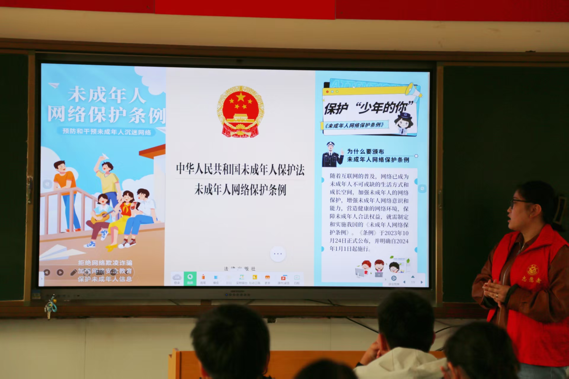 同时,志愿者带领同学们共同学习《未成年人网络保护条例》,普及网络安全知识,提醒大家警惕网络诈骗、不良信息传播等风险,倡导青少年树立正确的网络观,坚持绿色阅读、文明上网,自觉抵制各类不良诱惑。