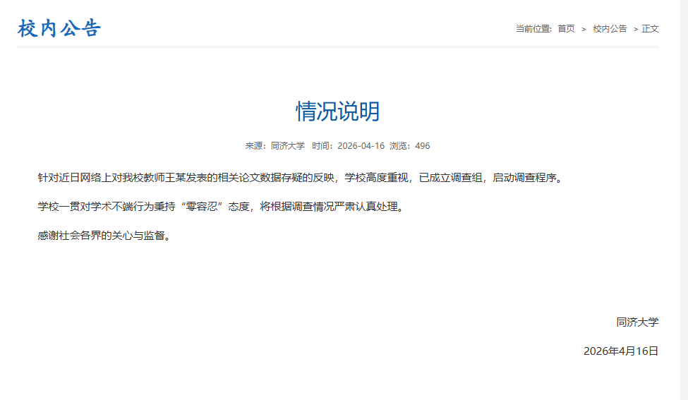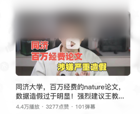 此前,有博主质疑同济大学特聘教授、同济大学生命科学与技术学院院长、国家重点研发计划项目首席科学家、自然基金委创新群体项目负责人王某两篇顶刊Nature论文涉嫌原始数据造假。