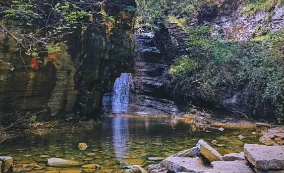 ✅亮点:3km青石步道沿溪而行,潭水清澈,可玩水、抓虾、捞蝌蚪,亲子友好,谷口处有网红打卡点藤原豆腐店