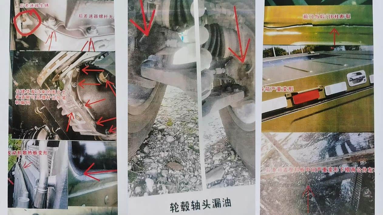 然而,在随后使用车辆的3个多月里,这辆“猛士”故障频发,让苏先生的心彻底凉了。“我发现车辆机盖是断裂修补的,发动机散热板也变形了,后车厢漏水严重,轮毂的轴头也漏油,前门和后门之间的B柱开裂,后备厢严重变形,后差速器和尿素箱边杆都生锈了,这些还不是最严重的问题。”苏先生告诉记者,最让他后怕的是一次在高速公路上发生的惊险一幕,“当时我在去北京的高速公路上,速度提到110-120公里/小时,车子突然亮起了故障灯,油门再踩已经没有动力了。”经历这次抛锚,苏先生再也不敢驾驶这辆问题频出的改装车。