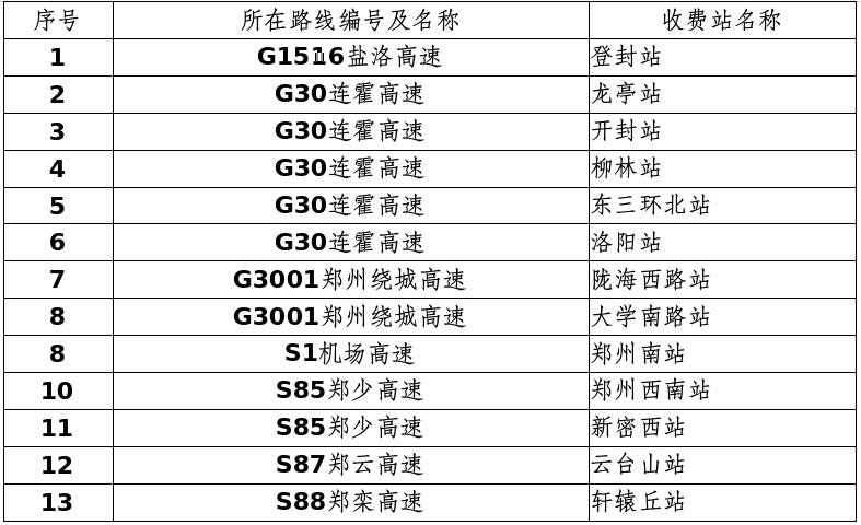 预测可能出现拥堵的收费站有:郑州南站、东三环北站、柳林站、大学南路站、陇海西路站、郑州西南站等。同时,开封、洛阳、登封、焦作等旅游景区附近的收费站大概率会出现拥堵现象。