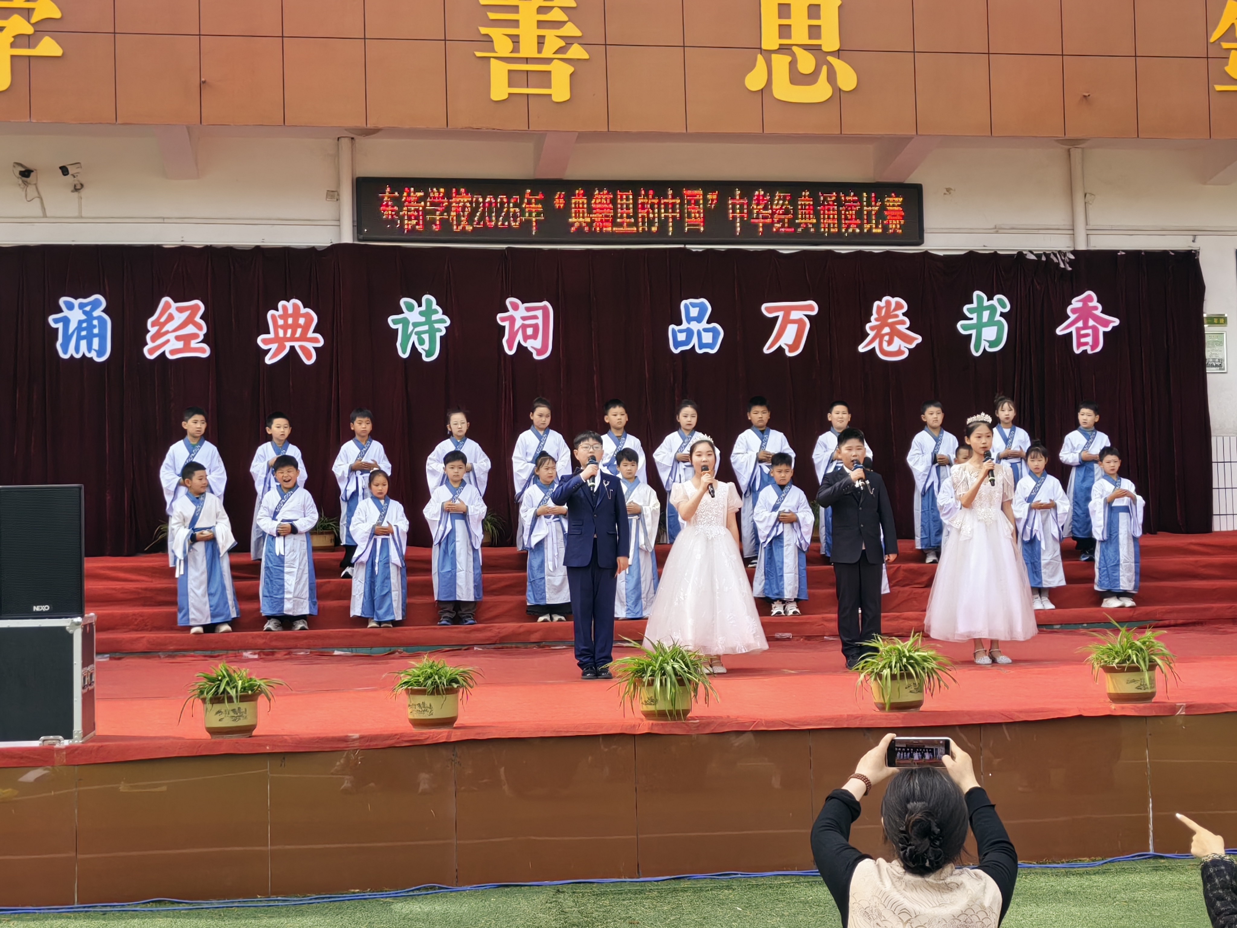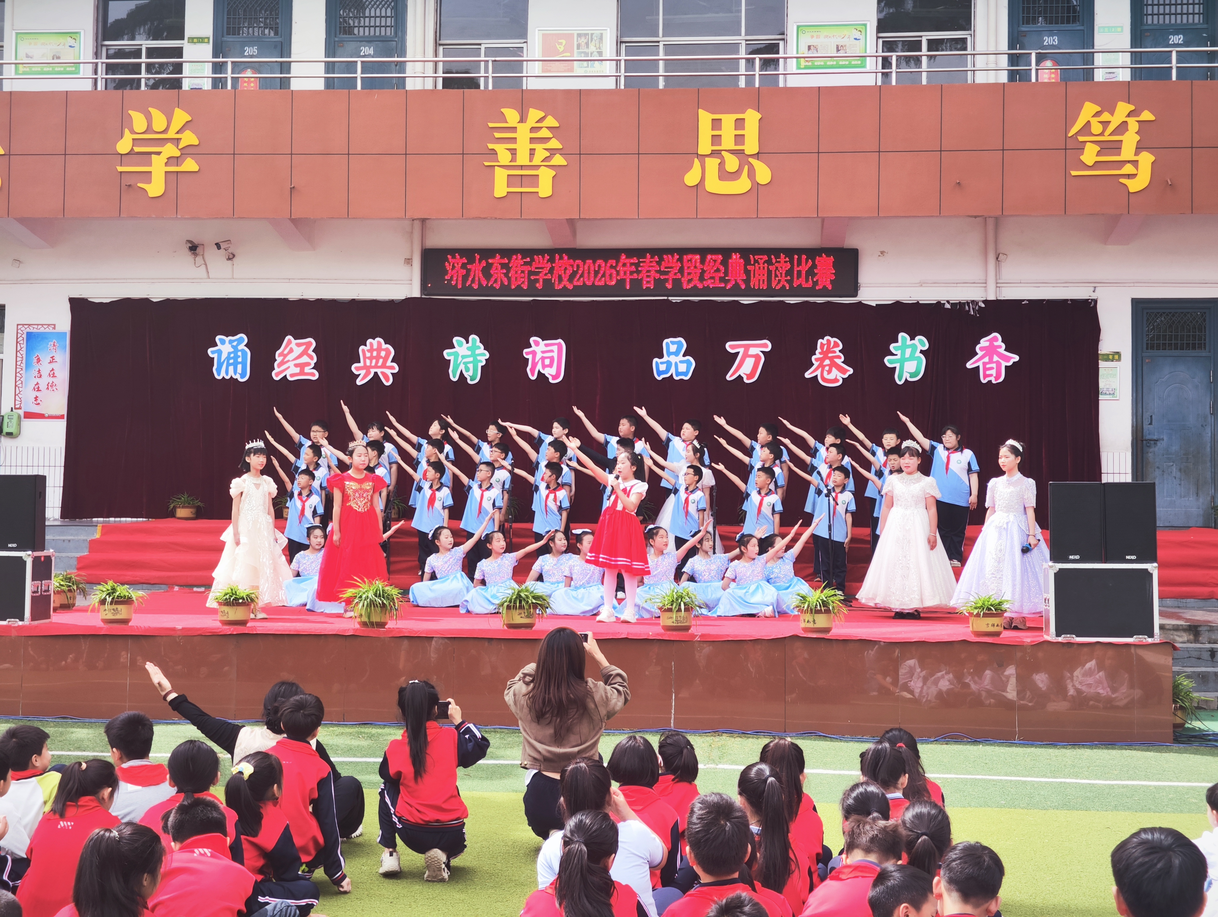 人间四月,春意融融;书香校园,雅韵流芳。为积极弘扬中华优秀传统文化,4月22日上午,济源市济水东街学校举行“诵经典诗词 品万卷书香”经典诵读活动比赛。该校一至六年级学生以声为媒、以诗为桥,共同演绎了一场浸润心灵的文化盛宴。