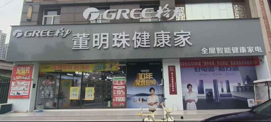 4月23日,郑州市金水区文化路一家“董明珠健康家”店内,所有电器都披着“真铜实料 格力造”的宣传语。