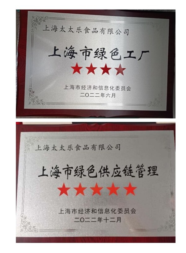在供应链管理方面,太太乐建立起完善的绿色供应链管理体系,于2022年获得"上海市绿色供应链管理企业"最高五星评级两项权威认证。