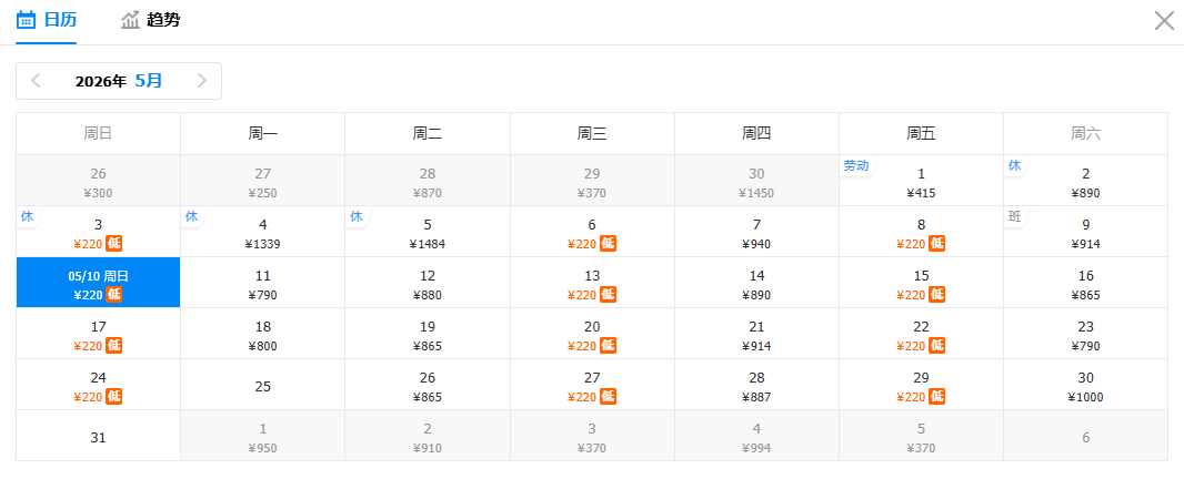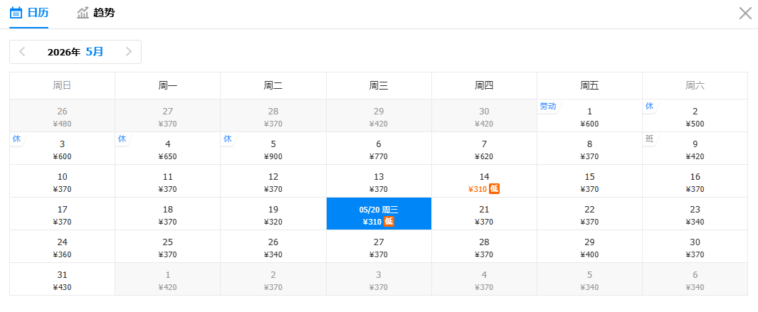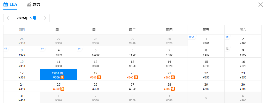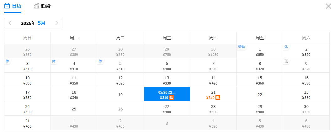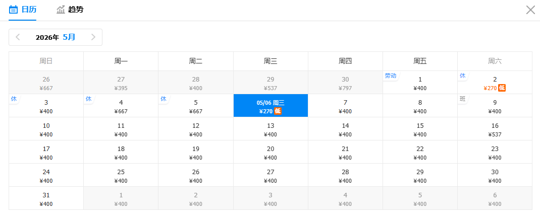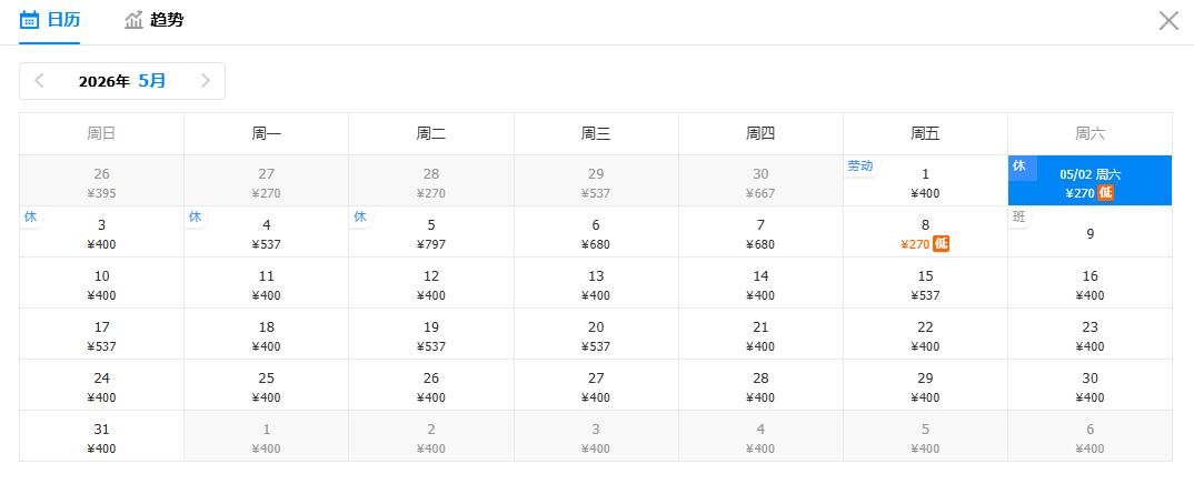 *以下信息来源于携程网,文中截图时间为4月23日20:00,机票价格随时波动(不含燃油费),请以购票平台实际查询结果为准。