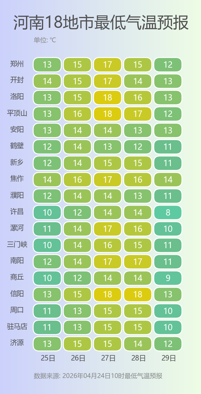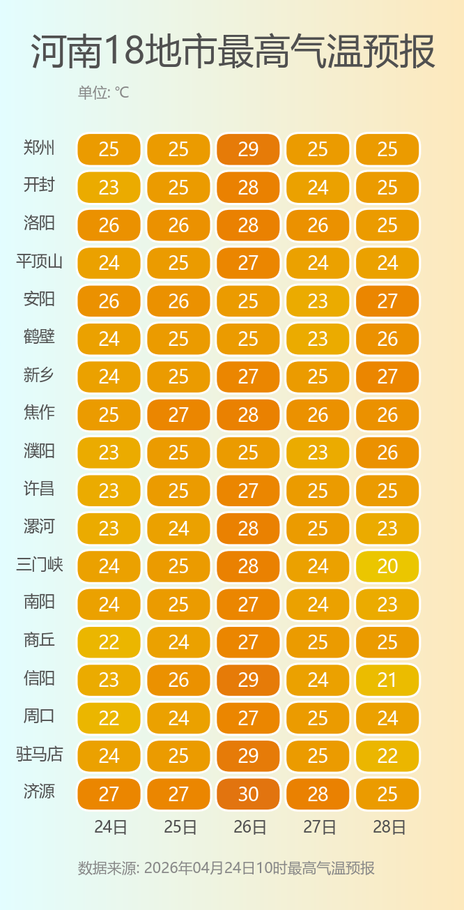 预报来源:河南省气象台2026年4月24日12时预报