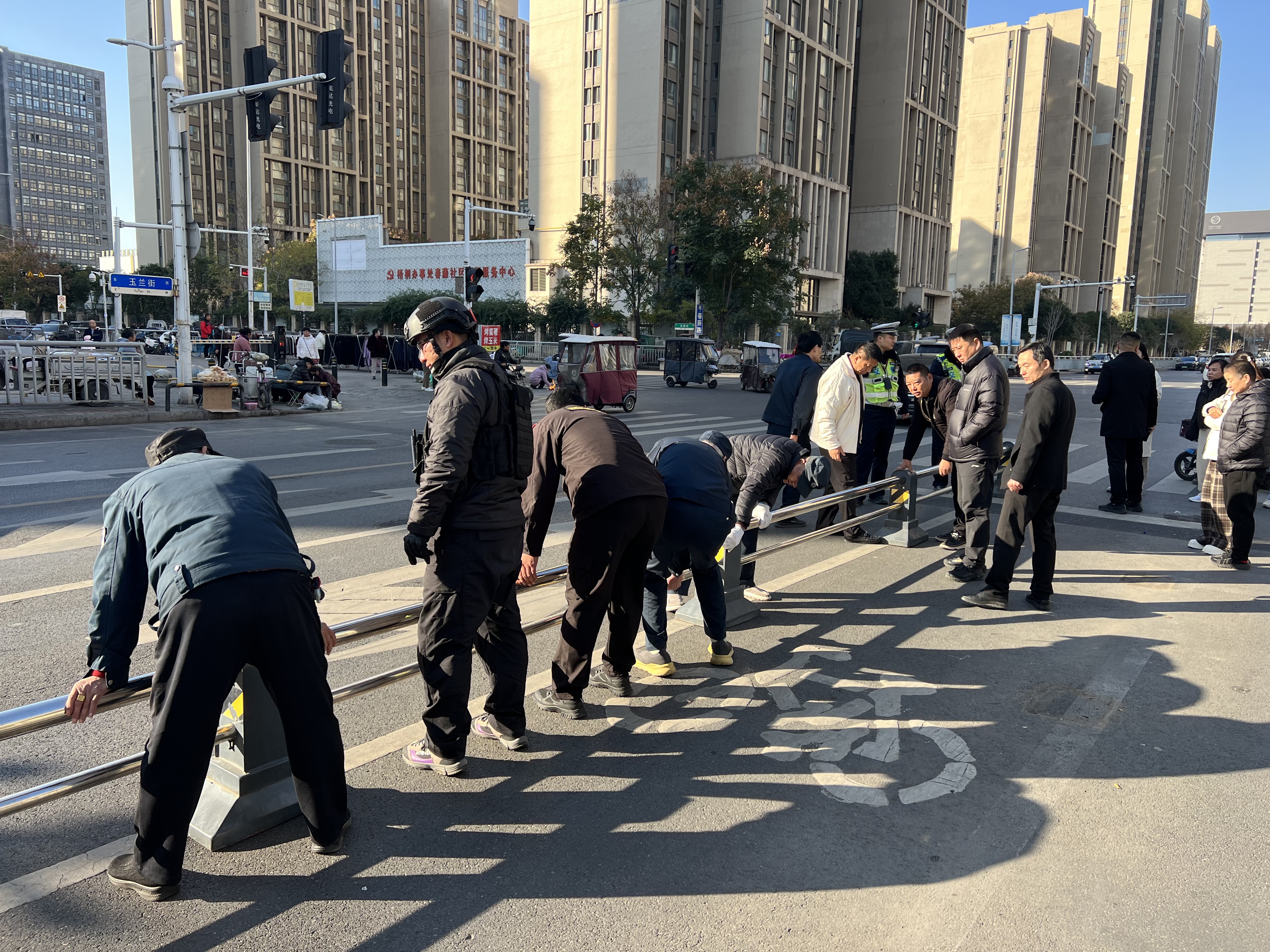 11月20日,郑州高新区城市管理部精细办联合交警十一支队、梧桐办事处城管科、辖区社区及四附小,通过调整、优化玉兰街(春藤路-石楠路)机非隔离护栏位置,为周边师生与居民打造安全有序的通行环境。