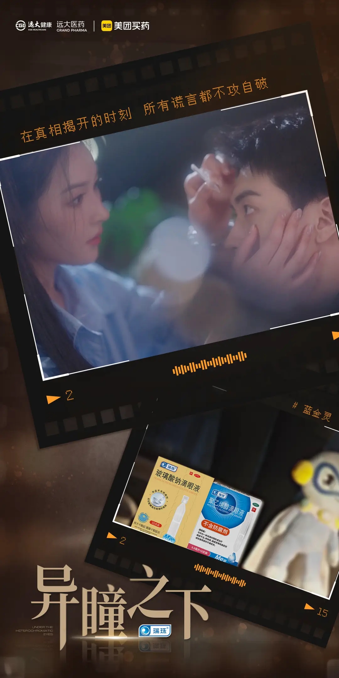 《异瞳之下》创意地将瑞珠滴眼液的护眼功能转化为“异瞳测谎”的超能力设定,并以此为纽带,让女主角使用产品的情节自然地成为推动剧情的关键环节:从第2集“熬夜追凶眼疲劳”到第4集“美瞳佩戴急救”,5处产品植入均与角色“异瞳测谎”剧情线深度绑定。特别是「蓝金灵」CP组合(蓝色聚乙烯醇滴眼液+金色玻璃酸钠滴眼液)巧妙融入剧情关键节点,成为男女主情感升温的见证者。通过“小金美瞳疲劳急救”等自然情节设计,将产品缓解眼疲劳的核心功能转化为剧情刚需,既推动故事发展又强化品牌记忆点,实现内容与营销的无缝衔接。