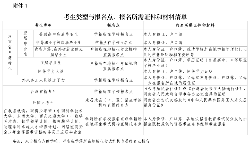 具有正式学籍的应届毕业生,在学籍所在学校报名点报名。往届生、同等学力等社会考生,在户籍所在地招生考试机构直属报名点报名。
