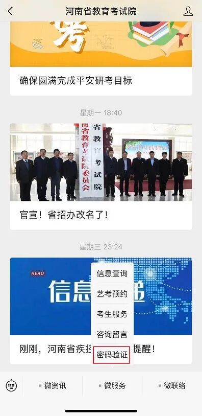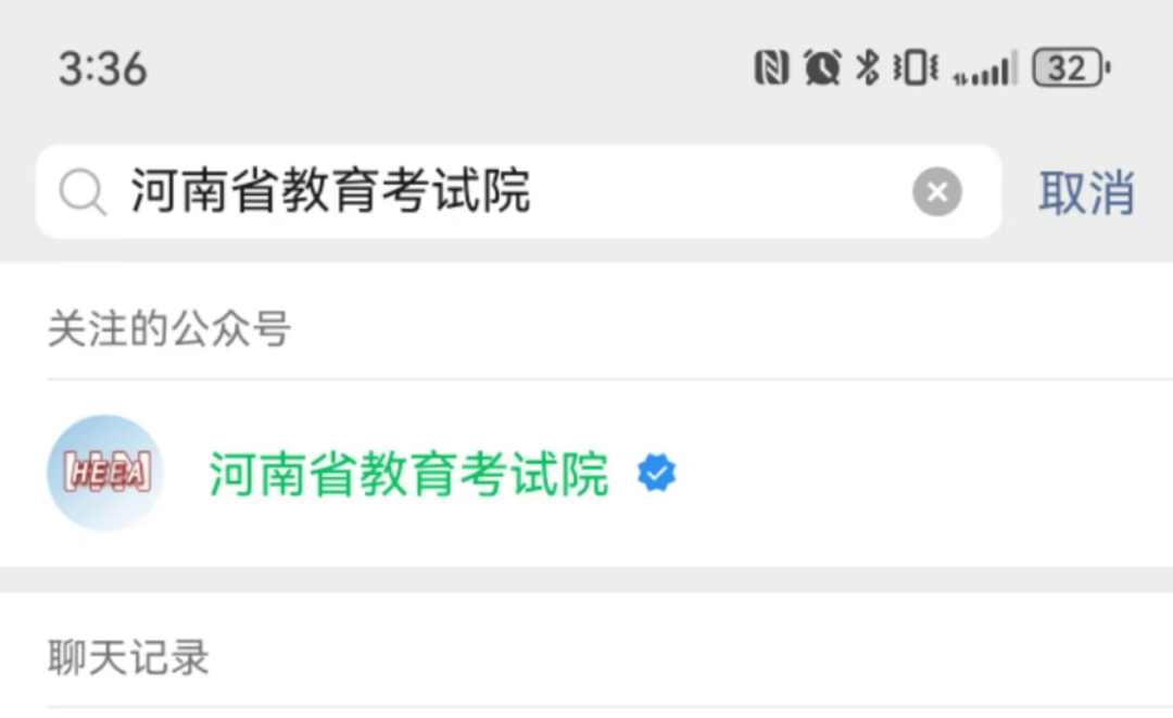 微信搜索“河南省教育考试院” 微信公众号并关注