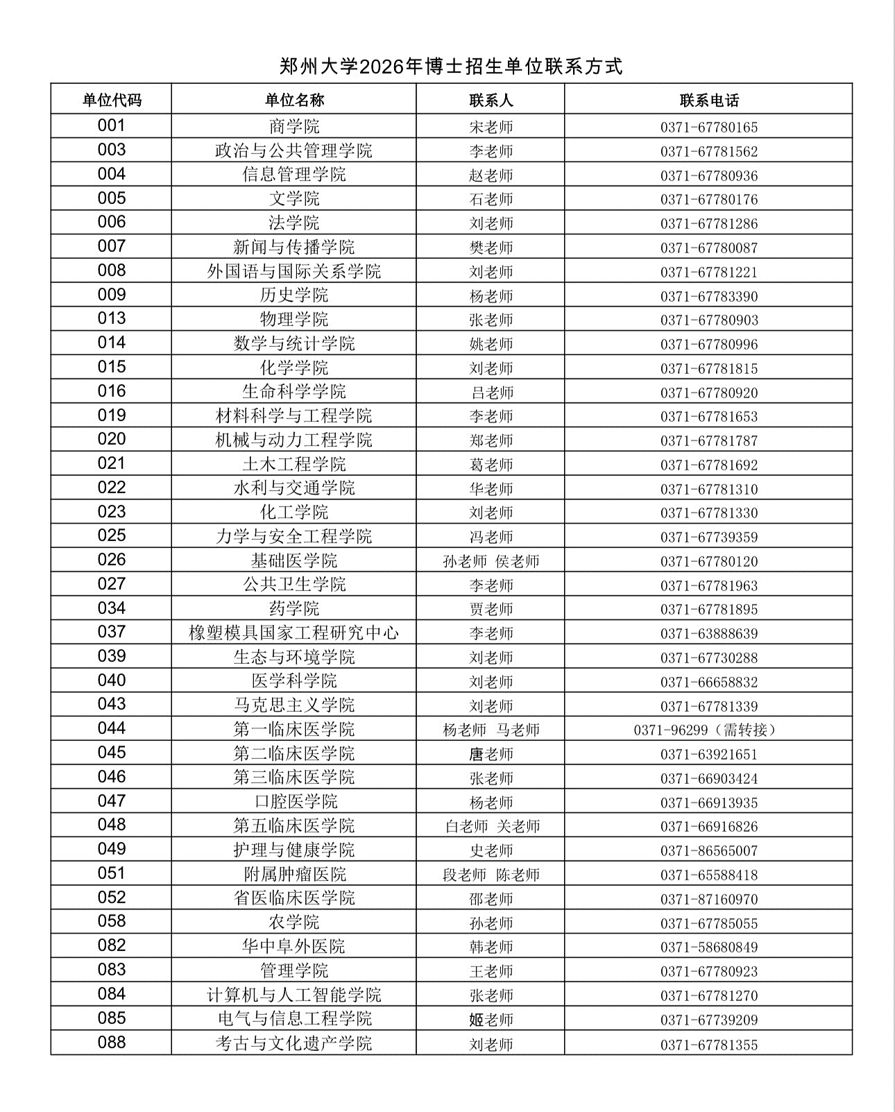 详见《郑州大学2026年博士研究生招生专业目录》。